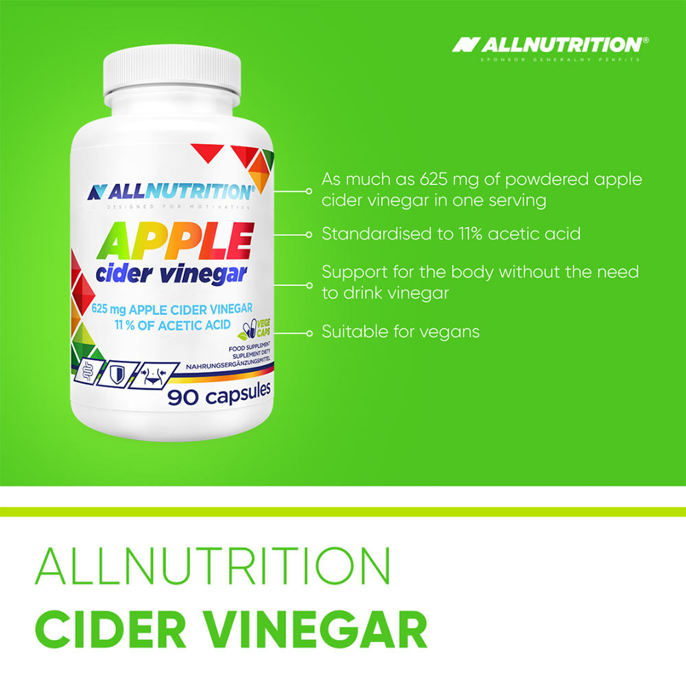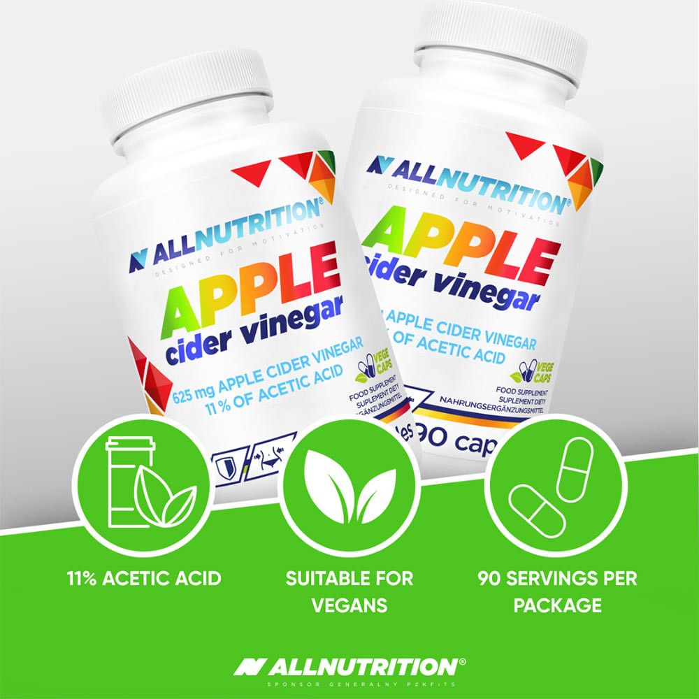 ALLNUTRITION APPLE CIDER VINEGAR este un supliment alimentar sub formă de capsule practice, care conține oțet de mere pudră standardizat la 11% acid acetic. A fost creat pentru cei care doresc să-și susțină sănătatea generală – fără necesitatea de a bea oțet. Datorită formei sale moderne de capsule, produsul este ușor de utilizat în viața de zi cu zi.