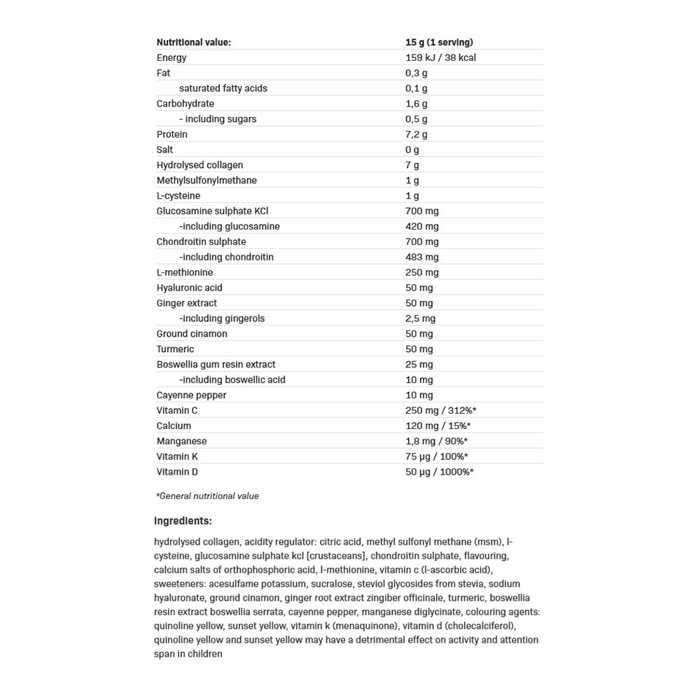 Consumați imediat după preparare! Destinat persoanelor active cu vârsta peste 18 ani. Nu consumați dacă sunteți sensibil la oricare dintre ingrediente! Nu depășiți doza zilnică recomandată! Suplimentele alimentare nu trebuie folosite ca substitut pentru o dietă variată. Se recomandă o dietă echilibrată și un stil de viață sănătos. Conținut ridicat de vitamina C. Nu este recomandat persoanelor care suferă de pietre la rinichi sau care sunt predispuse la formarea pietrelor la rinichi! Înainte de utilizare, se recomandă verificarea nivelului sanguin de 25-(OH)D și discutarea rezultatelor cu medicul sau farmacistul dumneavoastră. Poate conține derivați de cereale care conțin gluten, soia și lapte. Închideți întotdeauna ambalajul după utilizare.