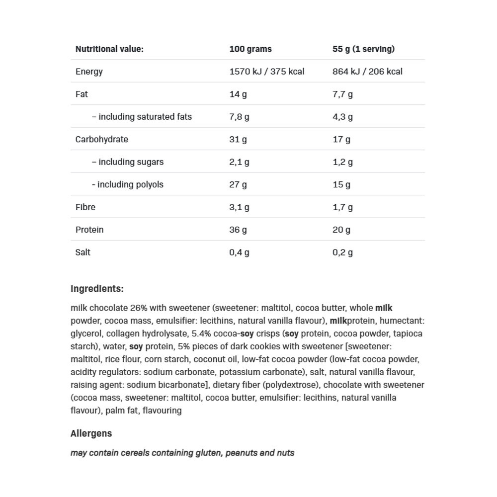 FITKING DELICIOUS PROTEIN BAR conține o cantitate mare de proteine din zer și soia, ambele cu profiluri excelente de aminoacizi. Este echilibrul perfect între aportul de proteine de înaltă calitate și conținutul scăzut de zahăr.