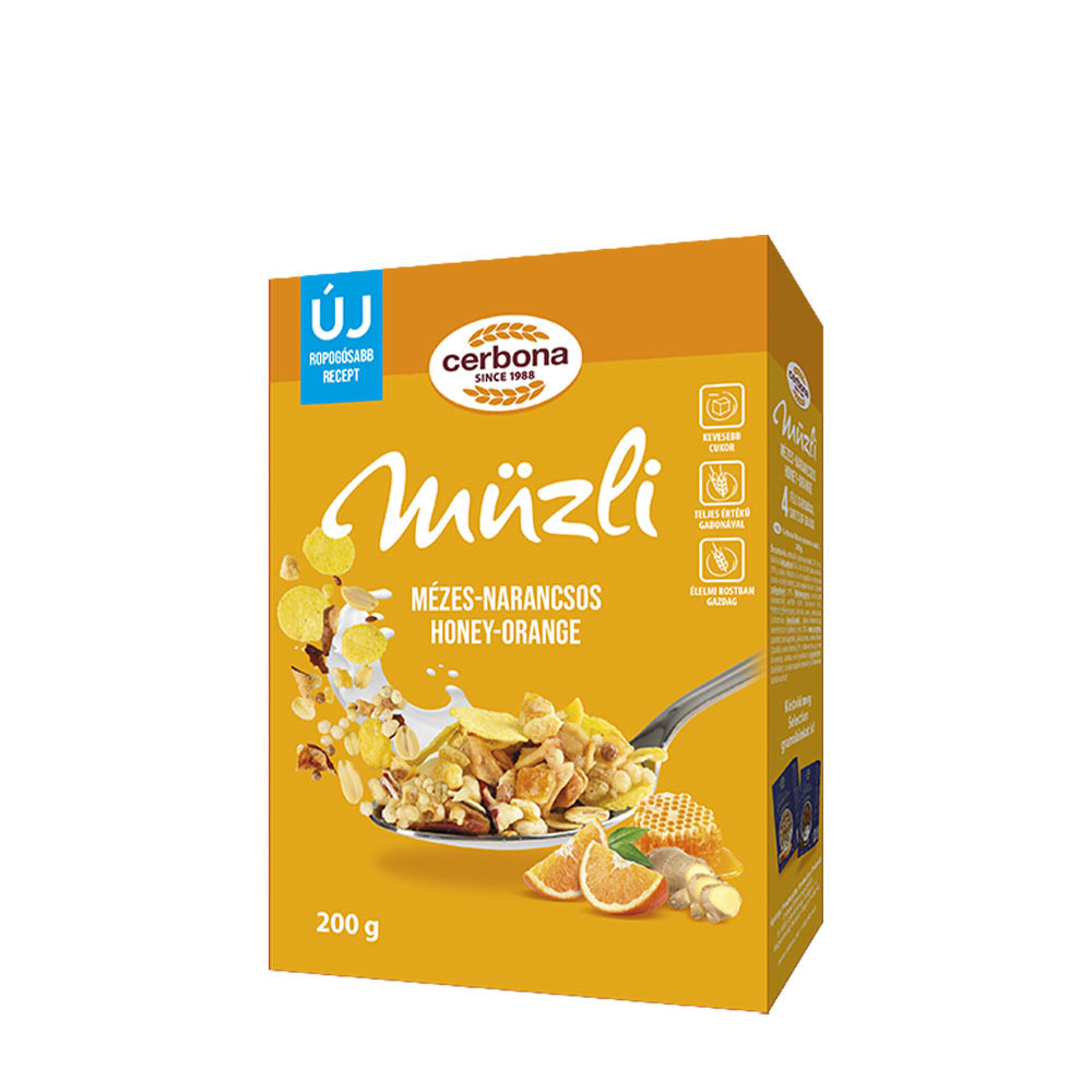 Müsliul cu miere și portocale are un conținut redus de zahăr și este bogat în nutrienți valoroși și fibre alimentare, fiind ușor de inclus într-o dietă sănătoasă. Müsliul cu miere devine irezistibil de delicios datorită mierii, portocalelor, ghimbirului, semințelor de in, precum și fulgilor crocanți de cereale obținuți din patru tipuri de cereale și ovăz laminat. Nu uitați să încercați și celelalte sortimente de müsli ale noastre!