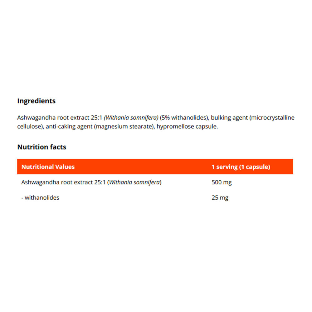 Ashwagandha 500 mg & beneficiile sale - conține un extract funcțional din rădăcina de ashwagandha (Withania somnifera)