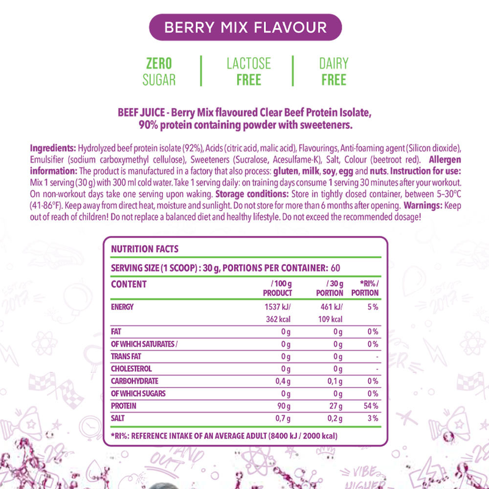 Clear Beef Protein Isolate Beef Juice iese în evidență nu doar pentru că oferă un izolat de proteină din carne de vită hidrolizată de înaltă calitate, cu un conținut impresionant de