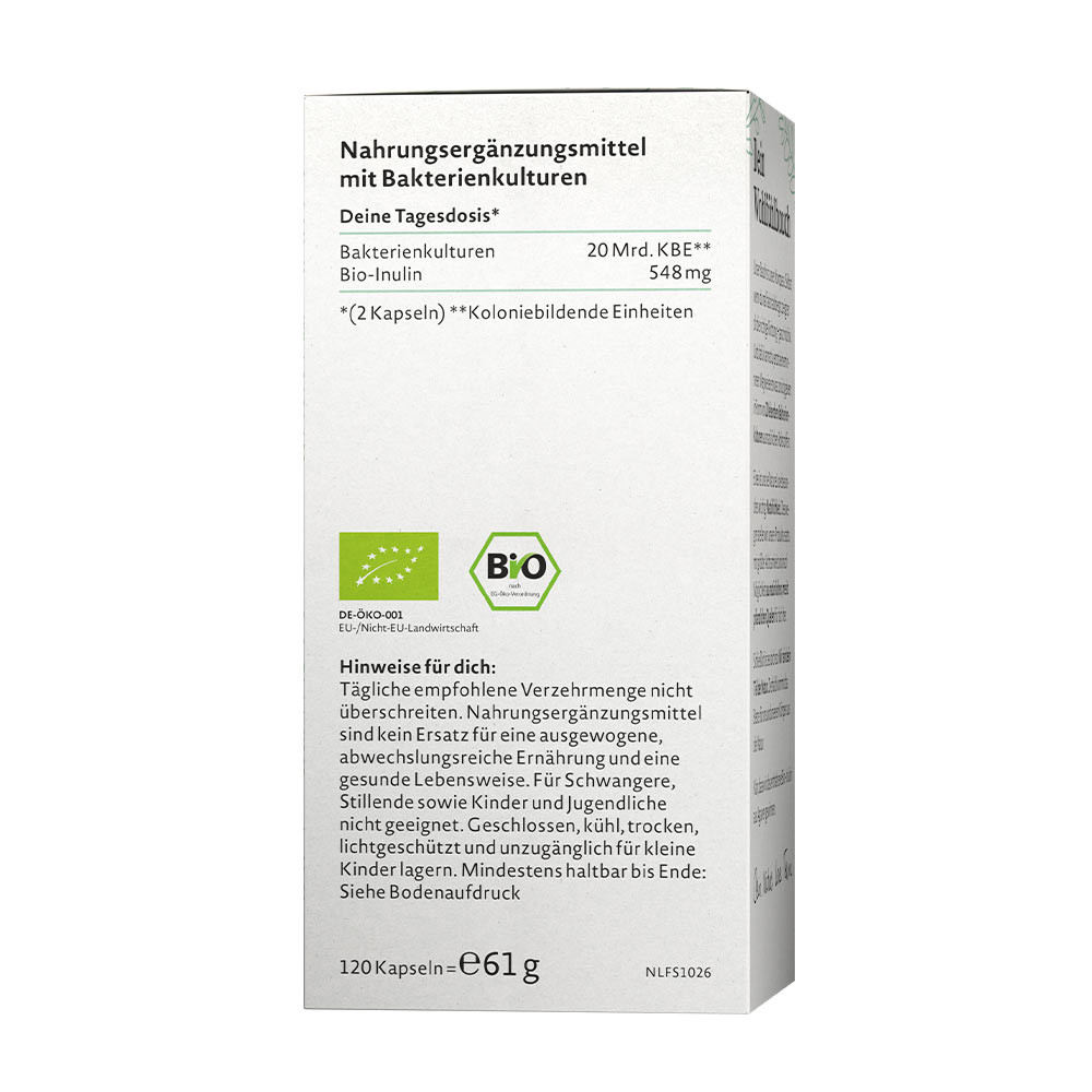 Burtica noastră este busola noastră. Chiar dacă o iei pe un drum greșit, ea îți arată direcția corectă – într-un mod cât se poate de intuitiv. Iar acum poți să-i oferi ceva înapoi ghidului tău interior: cu cele 20 de culturi bacteriene vii obținute din materii prime naturale și cu inulină organică din culturi organice controlate.