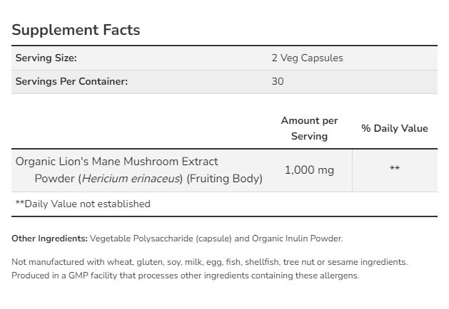 Now Foods Lion's Mane Mushroom (60 Capsule)
