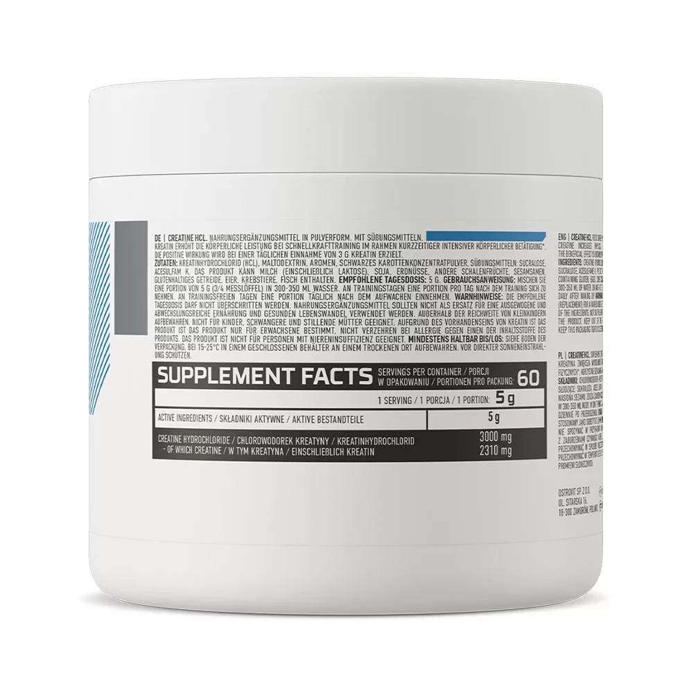OstroVit Creatine HCL este un supliment alimentar de cea mai bună calitate, care este o sursă de clorhidrat de creatină.