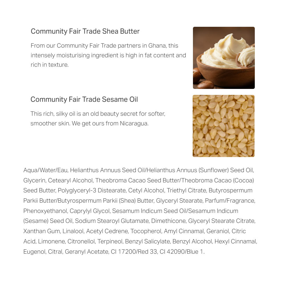 Untul de corp gros hidratează și catifelează în profunzime, având un parfum suculent de mure, pentru o piele netedă și hrănită.
