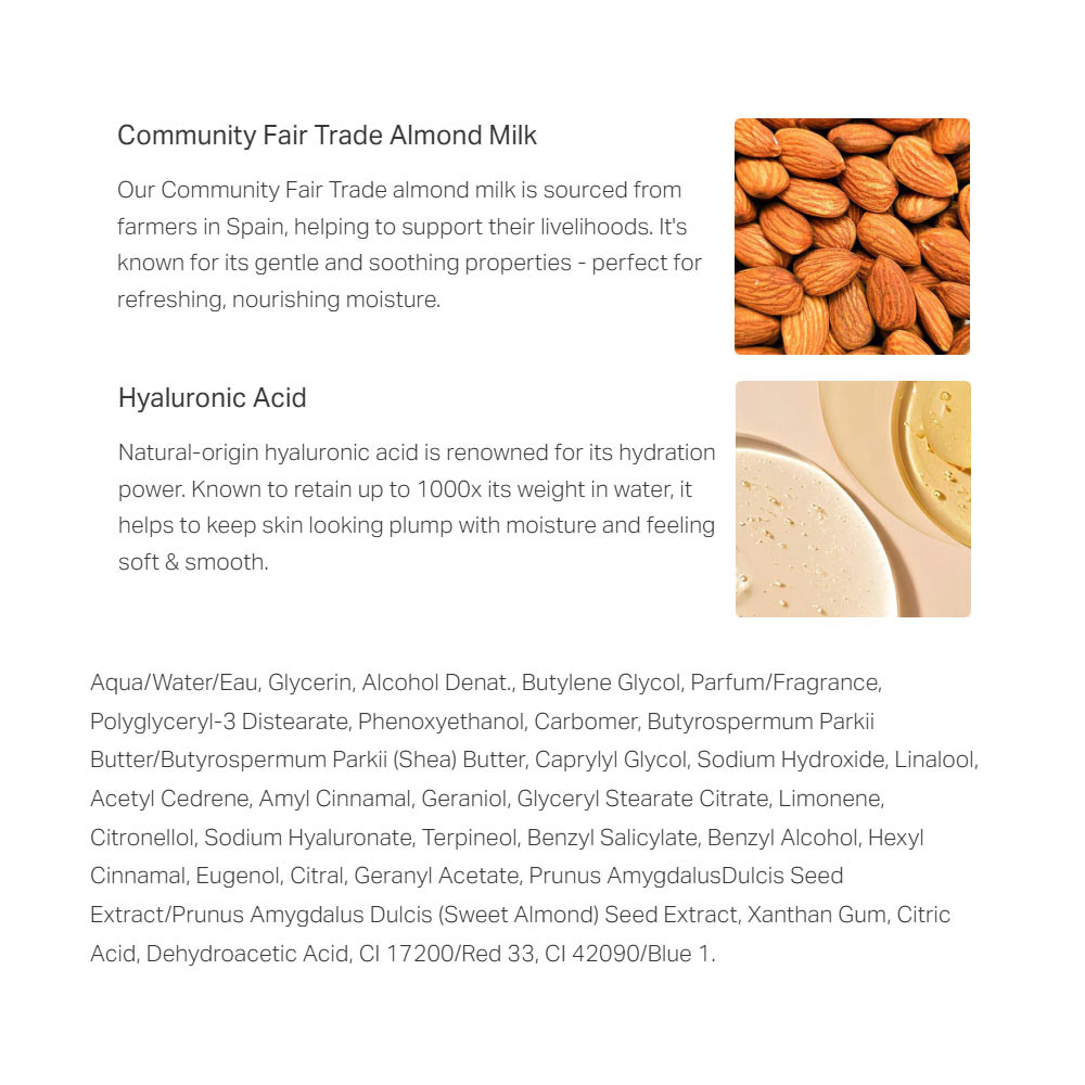 Gel-crema ușoară se absoarbe instantaneu (chiar și pe pielea umedă) și oferă hidratare timp de 48 de ore. Cu parfumul său fructat-floral de dewberry, frunze verzi, iasomie și mosc fin, este calea ta rapidă către o hidratare jucăușă, de zi cu zi.