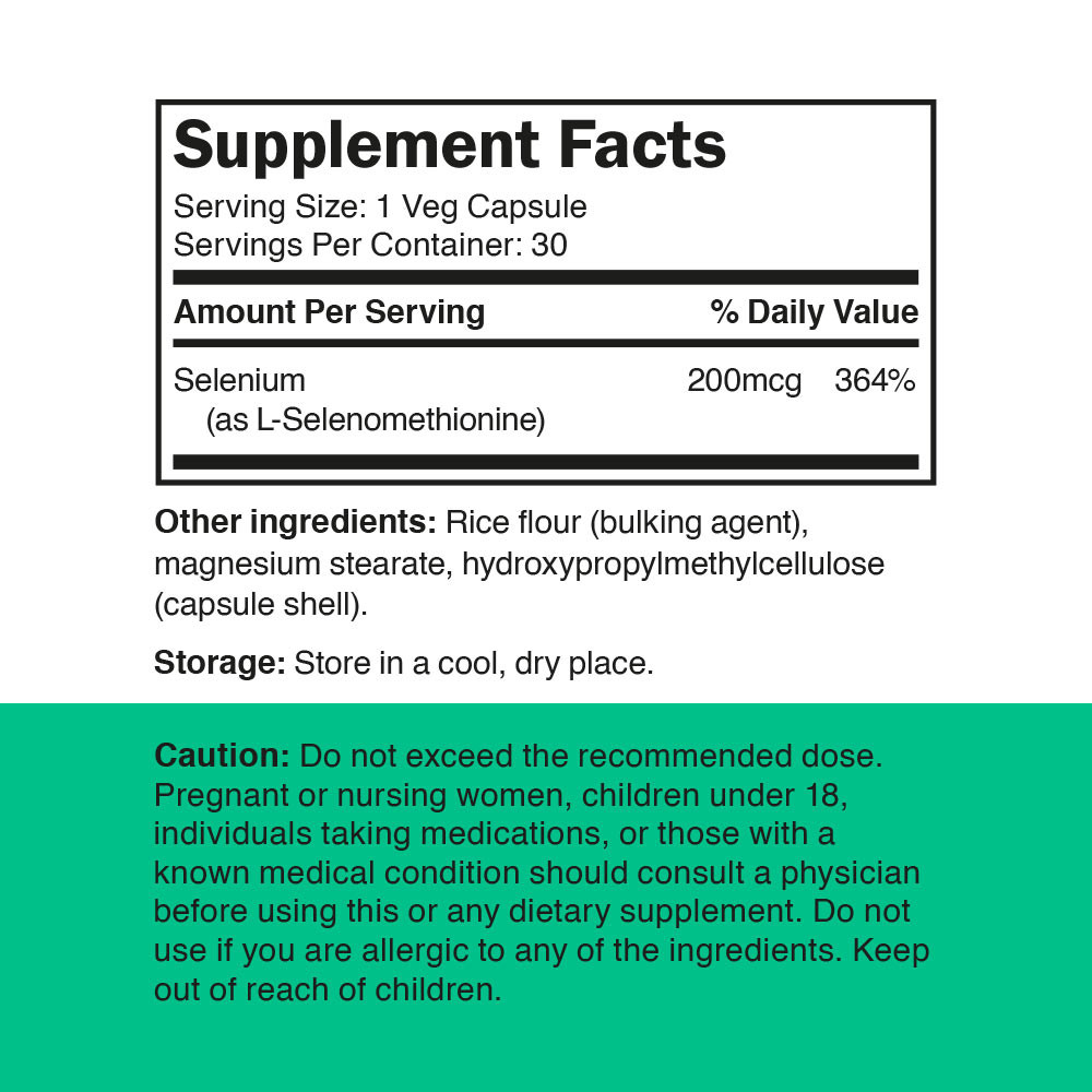 - Conținut ridicat de ingredient activ – 200 mcg de L-selenometionină organică per porție.
