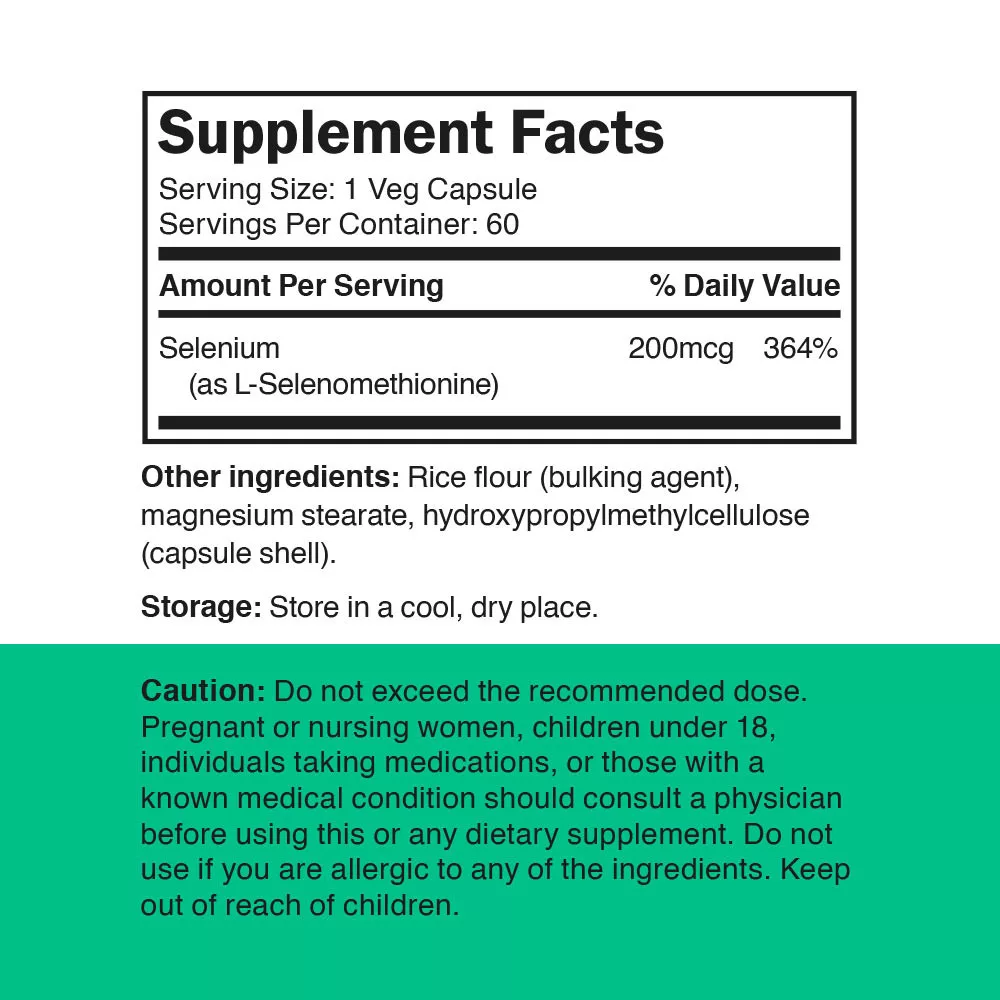 - Conținut ridicat de ingredient activ – 200 mcg de L-selenometionină organică per porție.