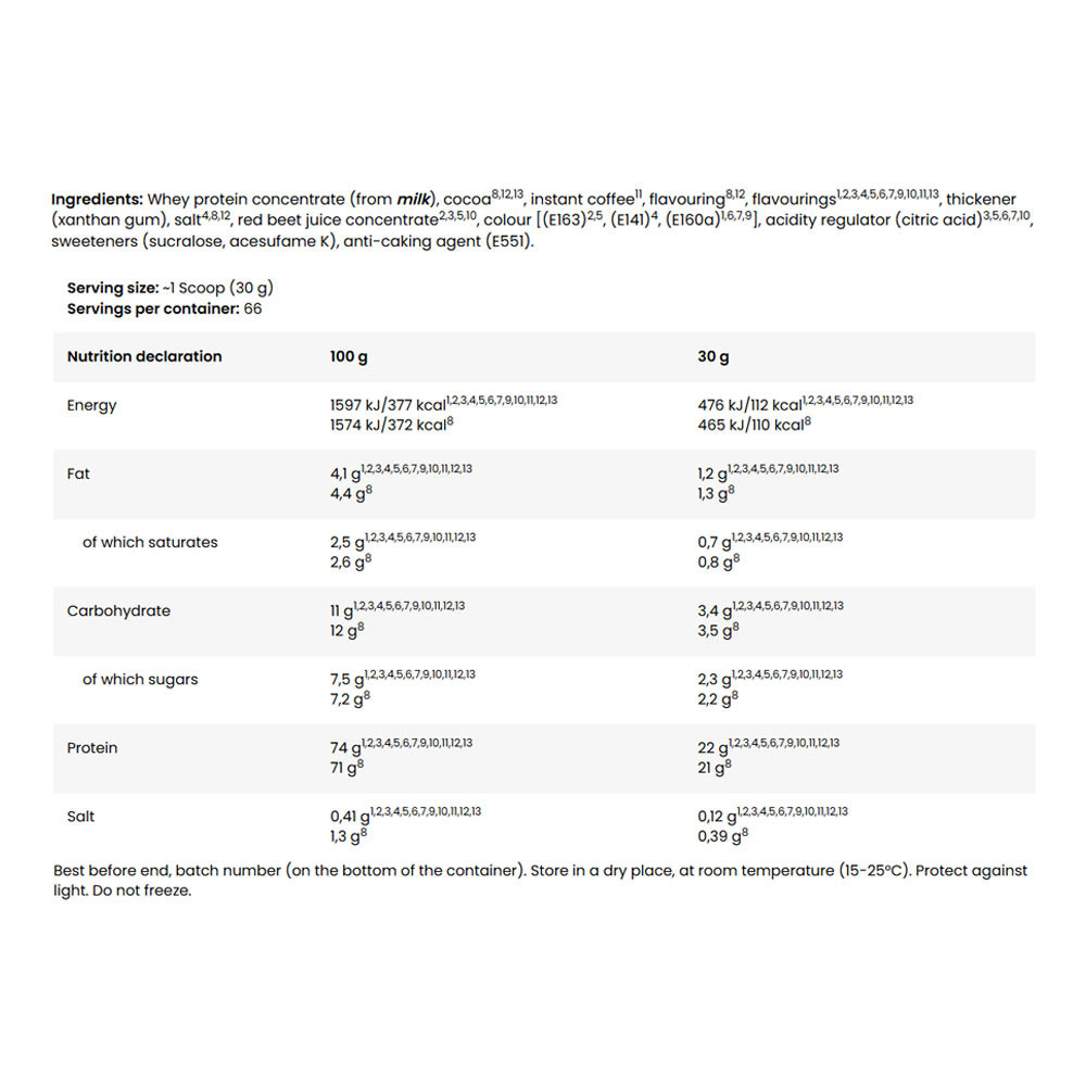 • Proteine de înaltă clasă sub formă de concentrat WPC – rata optimă de absorbție.